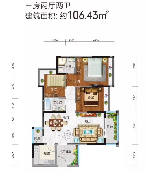 應(yīng)市加推03單元 帶裝修三房戶型